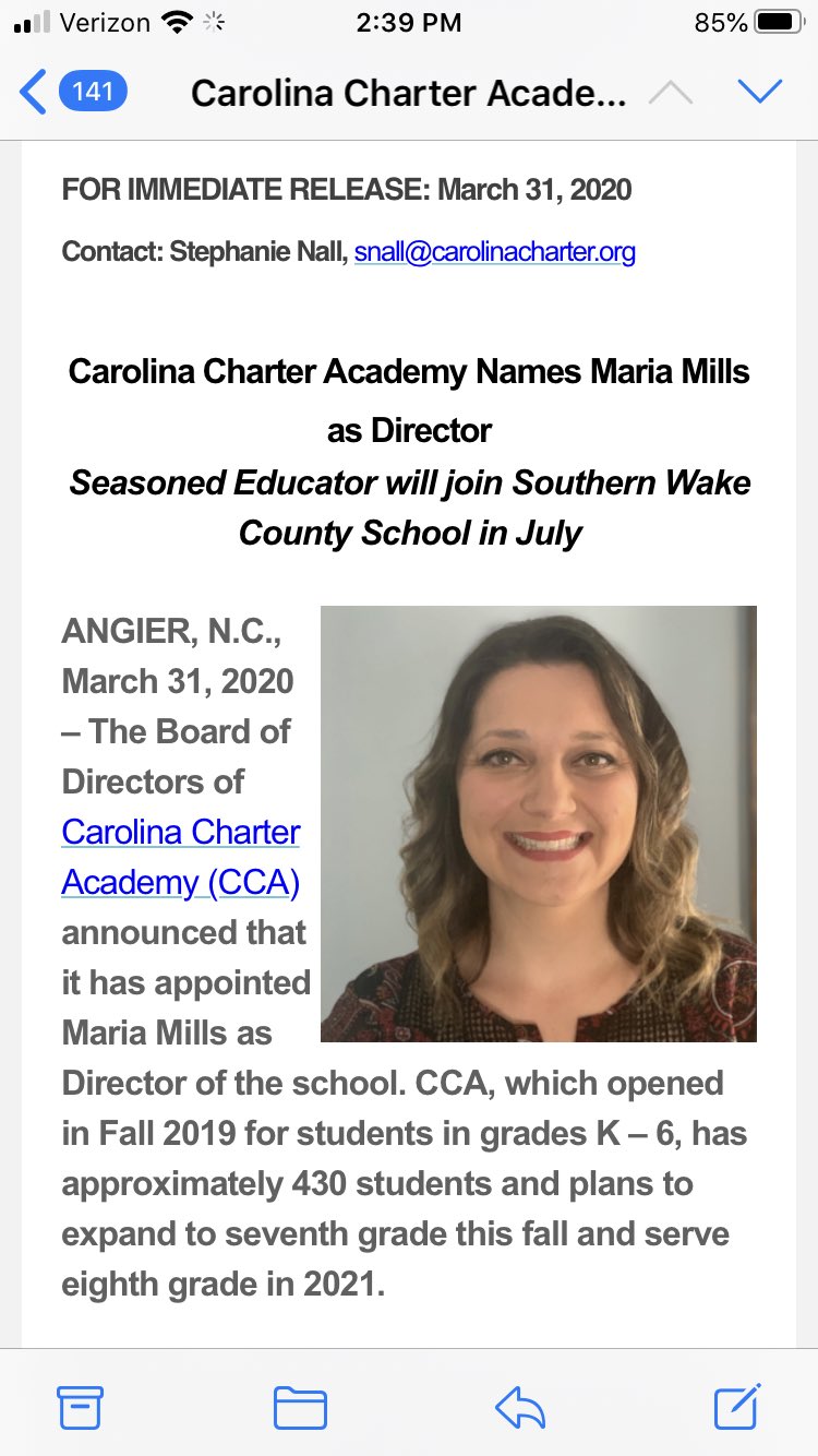 Keung Hui On Twitter Press Release Today From Carolina Charter Academy Announcing That Maria Mills Has Been Named The New Director Of The Charter School Starting July 1 She Is Currently Assistant